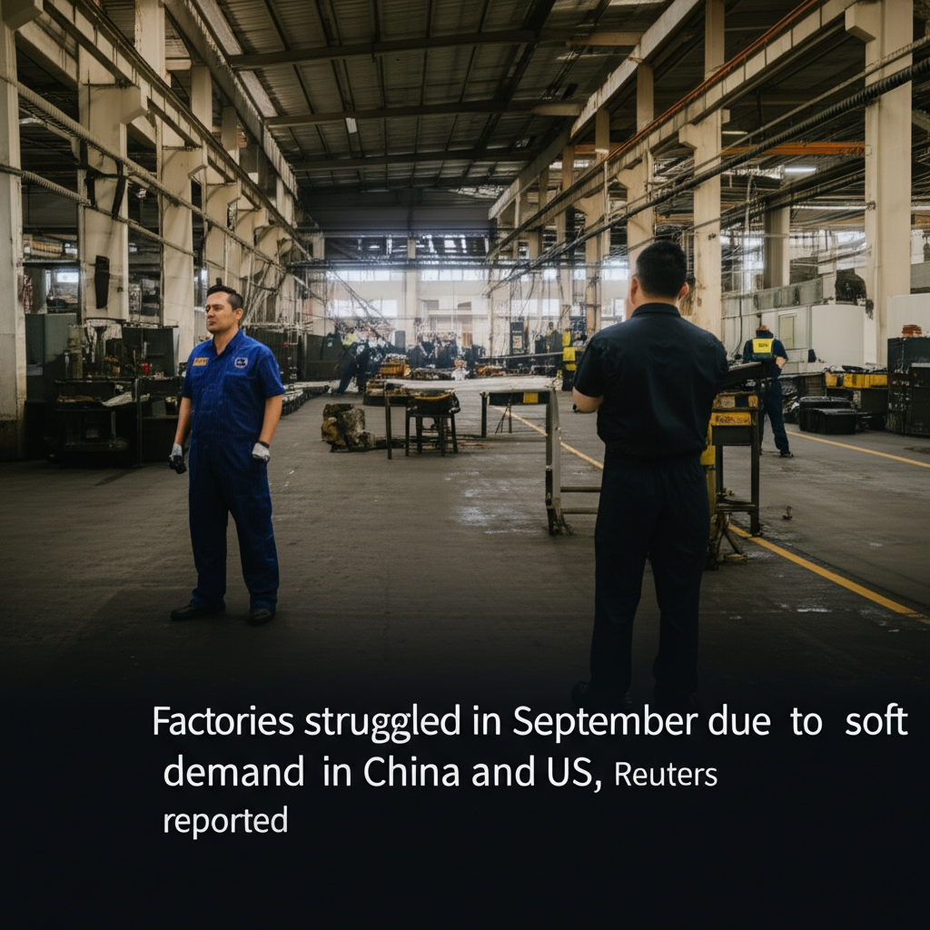 Factories struggled in September due to soft demand in China and US, Reuters reported.