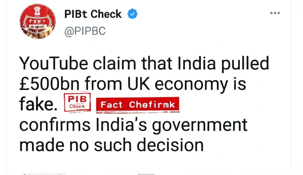 A YouTube claim that India pulled £500bn from UK economy is fake. PIB Fact Check confirms India's government made no such decision. Verify info.