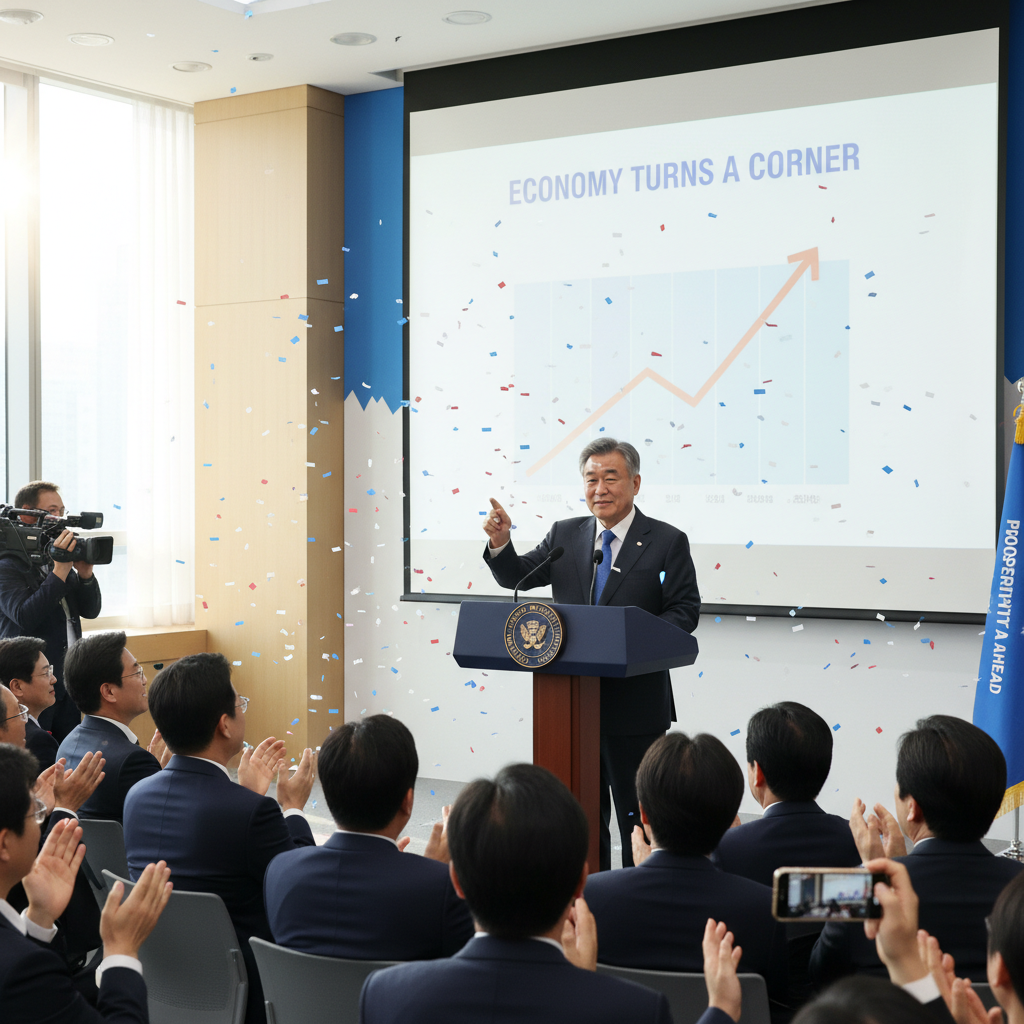 South Korean President Lee announced the country's economy has turned a corner, indicating an improving outlook.